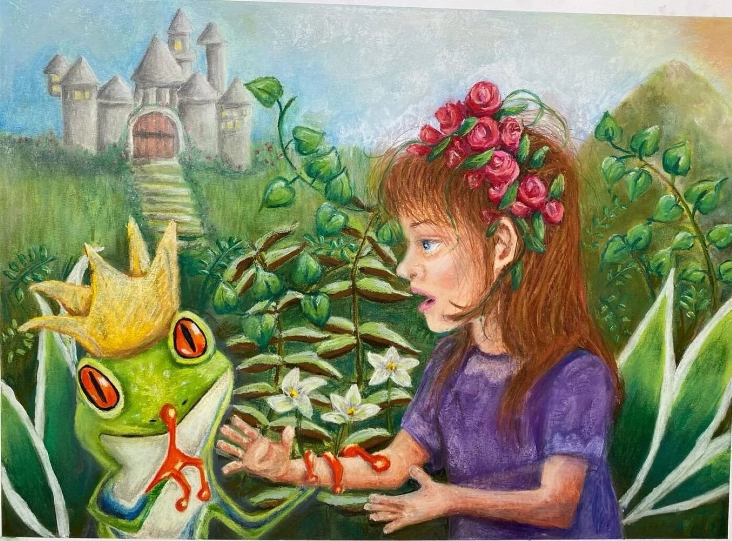 Artwork Description: Part of series exploring Fairy Tales from a different perspective. “The Frog Prince” explores the idea of reversing the traditional story. Would the lovely little forest maiden kiss the prince frog to become his princess?