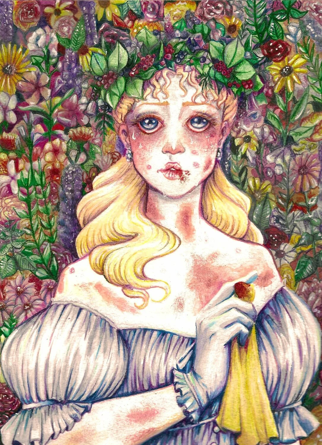 I chose this piece because I often feel stuck. Too paralyzed to move forward. Sucked in a spiral of your own cognitive distortions. Sometimes you don't notice that help is there. It can be hard to see. It feels like too much information. It all shifts into a pattern that's hard to identify which flower you need to cure you. But it's there. You just have to start by picking a flower.